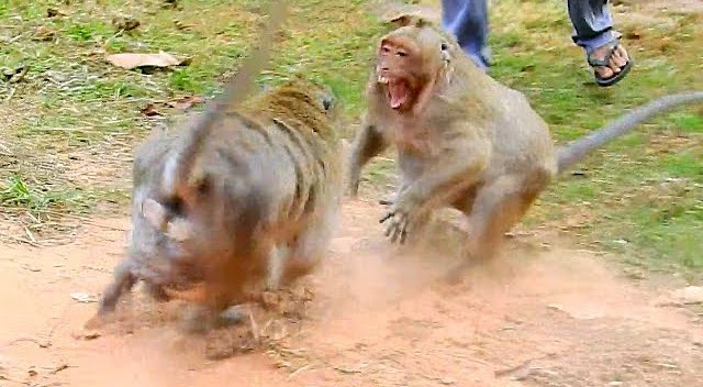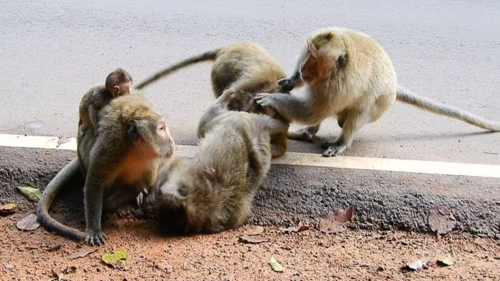 A terrifying and heartbreaking scene unfolded when two monkeys got into a fierce fight that left one injured near the eye. What started as a…