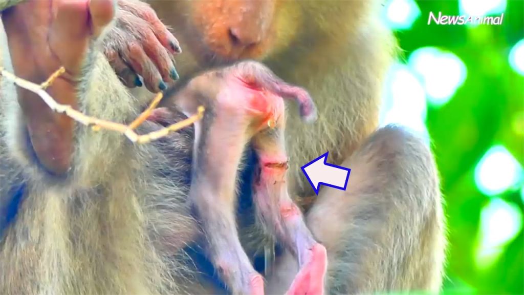 The baby whimpered weakly, eyes half-closed, one tiny arm limp. The mother let out soft, mournful cries, her face filled with fear and confusion. She licked his fur, gently rubbed his back, and tried to make him respond. The other monkeys gathered quietly around her, their chatter subdued. It was clear that everyone sensed the seriousness of the moment.
