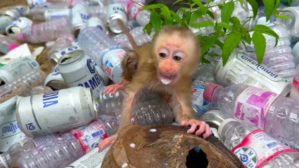 When a generous man discovers a tiny baby monkey struggling inside or beside garbage, and chooses to help instead of ignoring, that choice becomes more than rescue — it becomes emotional repair. Because trash is not just a location. Trash is a symbol of rejection. A discarded environment tells a young primate’s nervous system: no one claims you, no one protects you, your body has no social owner. So when a gentle human bends down, lifts, offers warmth, and begins to clean away filth — he is not merely “saving an animal.” He is reversing the story the environment was teaching.