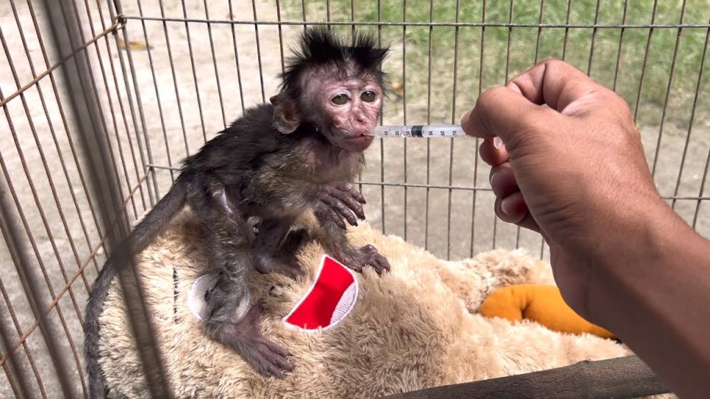 The sweet little monkey, usually nervous around anything unfamiliar, surprised everyone with how bravely he handled his medicine today. For a young monkey, taking medicine can be confusing and uncomfortable—the strange smell, the unusual taste, and the unfamiliar bottle all make the experience stressful. But this time, something changed. With gentle encouragement and a calm, reassuring environment, he drank his medicine well, showing both trust and growing confidence.