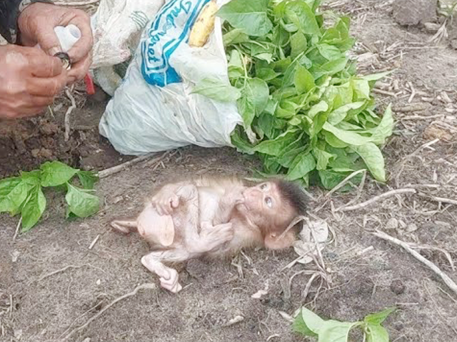 This particular baby monkey had already endured more than a newborn should. Whether separated from his mother by accident, danger, or environmental hardship, he found himself alone and frightened. His early days were marked by cold nights, an empty stomach, and an aching confusion about why the warm, familiar heartbeat of his mother was suddenly gone. But even in fear, his instinct to survive pushed him to seek help from anyone who seemed gentle enough to understand.
