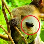 With warm water gently poured, the baby monkey twitched and squeaked, unsure of what was happening. Caretakers used soft cloths and delicate hands, making sure not to scare or hurt the little one. Bit by bit, the stains began to fade.