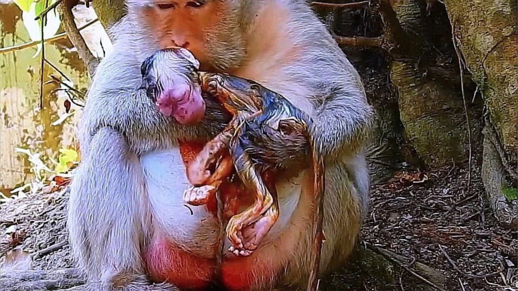 In the forest, where life thrives with sounds of rustling leaves and chirping birds, a quiet struggle unfolds. A mother monkey clings tightly to her…