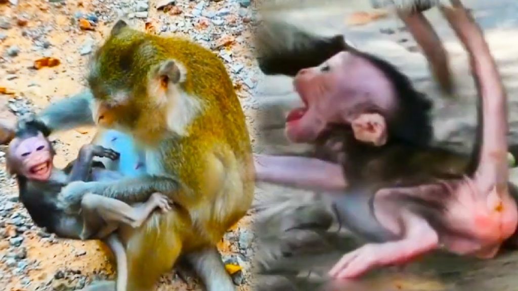 Monkey Cries Sadly as the Time for Weaning Arrives