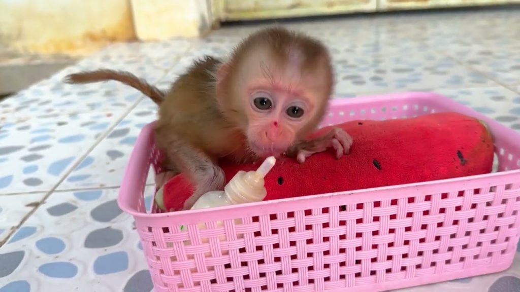 The scene looks dramatic from the outside — a tiny baby monkey with a scrunched-up face, feet stamping, little hands clawing toward the bottle, as…