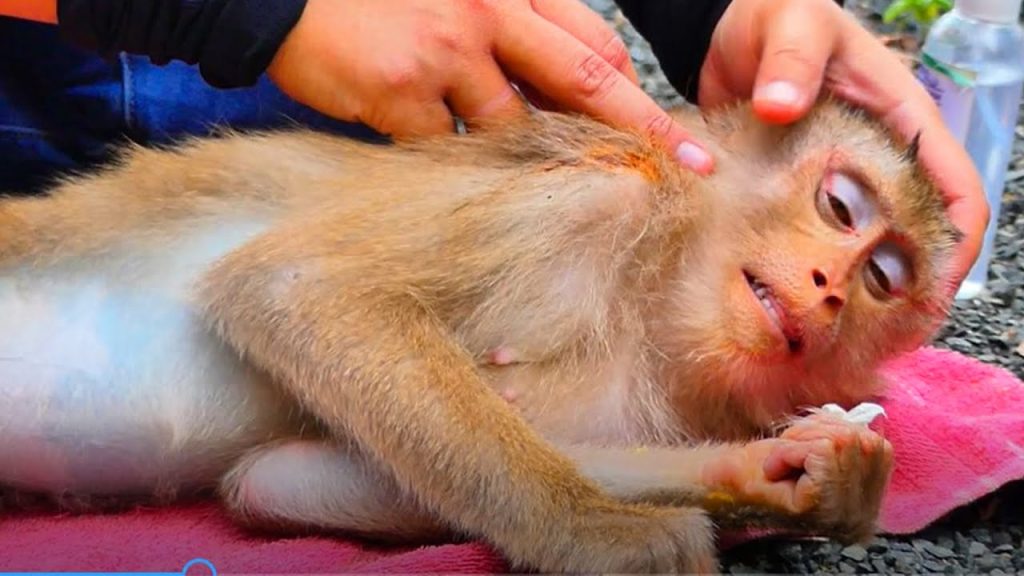Adorable monkey Moka experienced a moment of deep comfort and relief when a very kind traditional medicine practitioner gently massaged her small body. This scene…